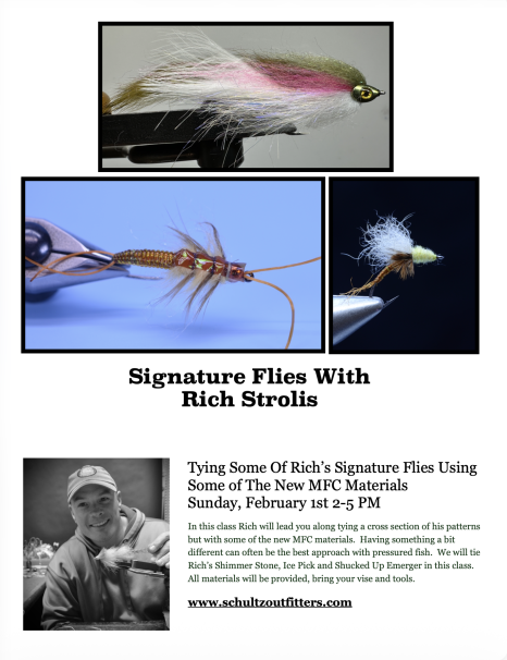 Signature Flies A Tying Class With Rich Strolis February 1, 2026 2-5 PM Ypsilanti MI via Schultz Outfitters.