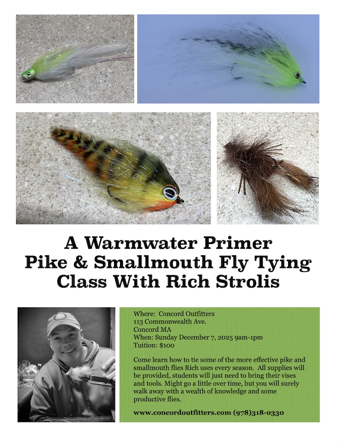Pike and Smallmouth Patterns Class at Concord Outfitters December 7, 2025 9 AM-1 PM.